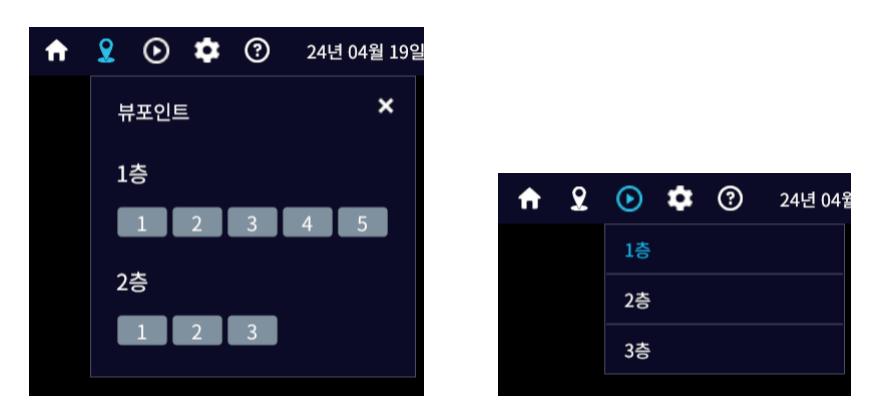 UseViewPoint를 1로 설정한 경우, 씬플레이 데이터 중 뷰포인트로 설정된 항목이 "뷰포인트" 에 번호로 구성된 버튼으로 표시됩니다.