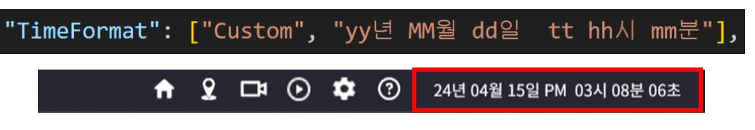 상단 메뉴 우측에 표시되는 시간에 대한 포맷을 설정합니다.