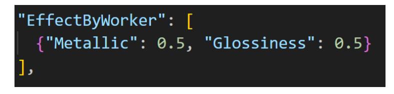 작업자에 해당하는 오브젝트에 Metallic, Glossiness 값을 적용합니다. "Metallic", "Glossiness"에 각각 적용할 값을 입력합니다.