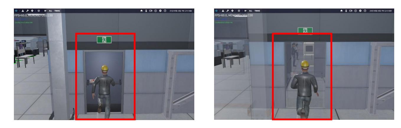 캐릭터 모드에서 문과 같은 오브젝트를 원활하게 지나가기 위해 그룹별로 오브젝트를 반투명화 할 수 있습니다.