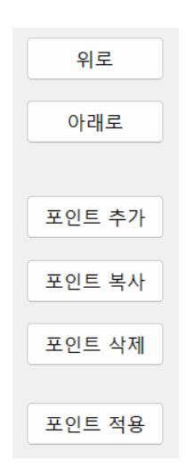 동작 포인트 항목을 추가, 복사, 삭제할 수 있으며, 순서를 위아래로 이동할 수 있습니다.