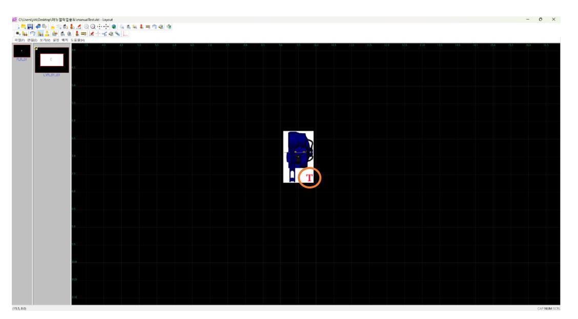 Layout Editor에서 티칭 로봇 장비를 배치합니다. 티칭 로봇 장비는 이미지에 'T'로 표시됩니다.