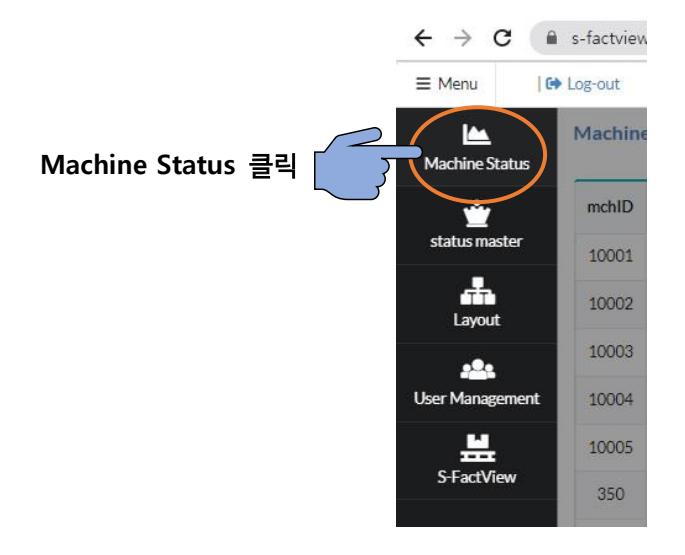 메뉴에서 Machine Status 항목을 클릭하여 Teaching 설정을 합니다. Teaching 설정은 Machine Status에서 장비 ID (mchID)를 입력한 후, 'monitorProc' 필드에 Teaching을 설정합니다