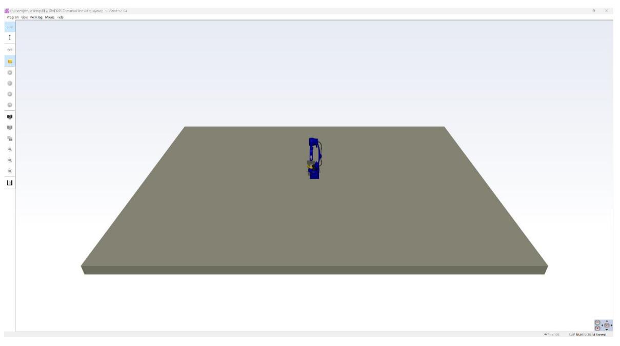 Layout Editor에서 작업한 레이아웃을 3D로 표시하며, 티칭 로봇 장비를 클릭하여 Teaching 작성을 수행할 수 있는 영역입니다.